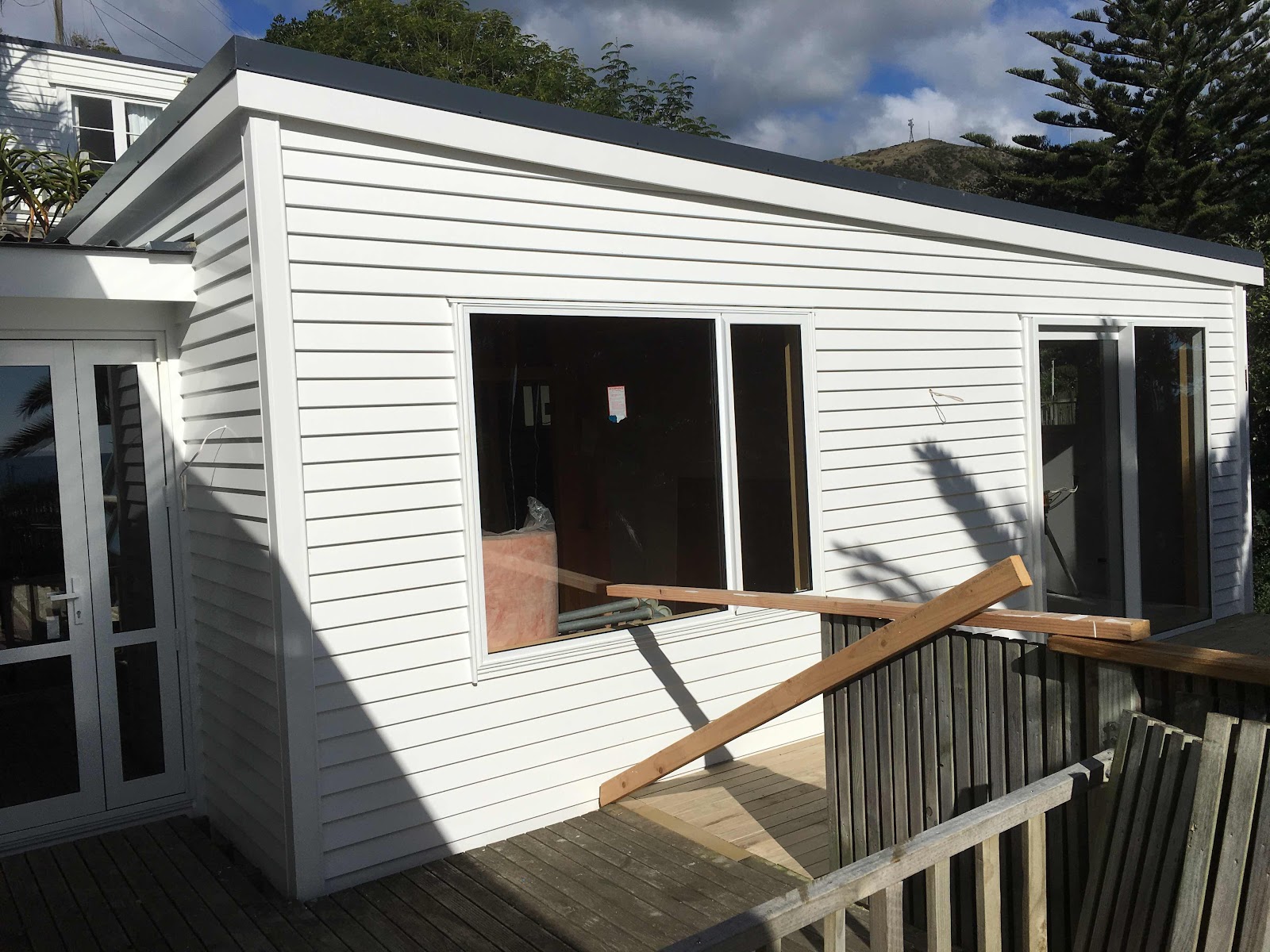 Ook alle interne deuren zitten er in en alle elektriciteit is aangelegd. We kunnen de uitbouw gaan gebruiken vanaf 1 juni. En dan gaan ze onze bestaande huis aan de slag.